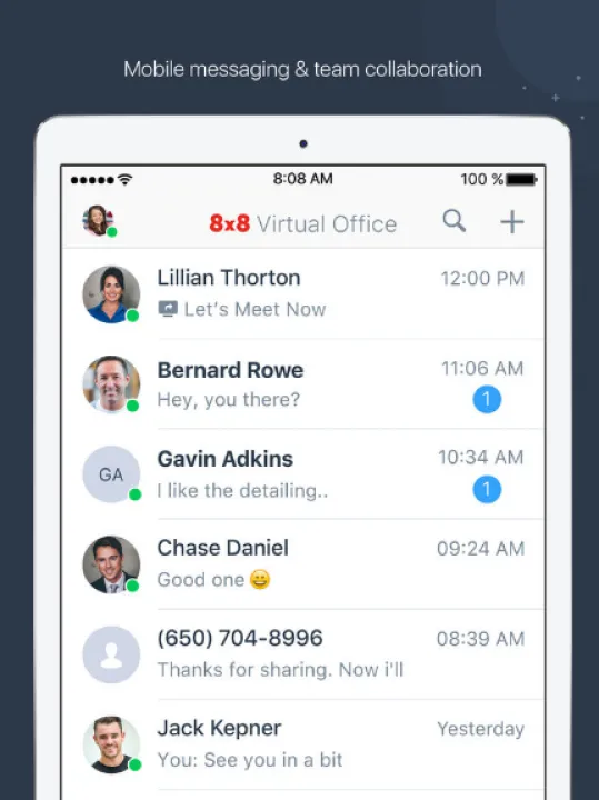 La plataforma de comunicaciones unificadas 8x8s Virtual Office permite a las empresas de todos los tamaños con chat privado, softphones, conferencias web, video yaplicaciones móviles Apple y Android mejorar la colaboración en cualquier dispositivo y en cualquier lugar. 8×8 Virtual Office se integra con soluciones empresariales líderes como Salesforce, Zendesk y NetSuite. Intregado en la nube, configurado en minutos , se puede administrar fácilmente desde cualquier dispositivo. . Un sistema de compromiso para administrar a todos los empleados y la interacción