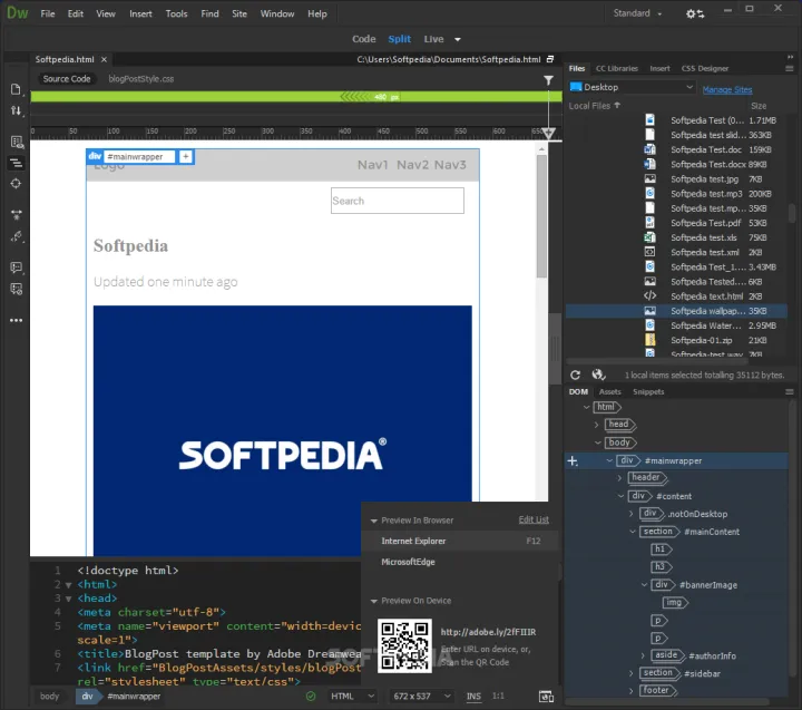 Con Adobe Dreamweaver cree sitios web que se adapten a cualquier tamaño de pantalla. Obtenga una vista previa de sus sitios y ediciones en tiempo real para asegurarse de que sus páginas se vean y funcionen como usted desea antes de publicarlas.