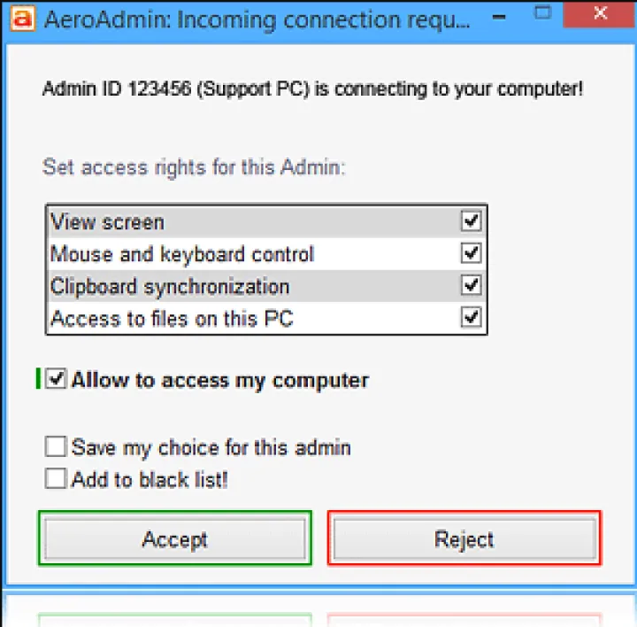 AeroAdmin hace que el control sobre los ordenadores remotos o el uso compartido de la pantalla sea tan fácil como una llamada telefónica, incluso para usuarios que no conocen la tecnología.
