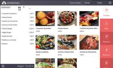 - Toma tus pedidos¡Registre los pedidos de tus clientes en unos pocos clics ! En el sitio o para llevar, tu caja táctil AirKitchen te permite distinguir entre dos tipos de pedidos para que su servicio sea más fluido.
