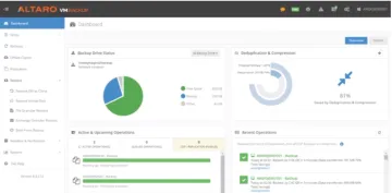• Reduzca drásticamente los requisitos de almacenamiento de respaldo en ubicaciones locales y fuera del sitio y, por lo tanto, acelere significativamente los respaldos con el exclusivo proceso de deduplicación en línea aumentada de Altaro.