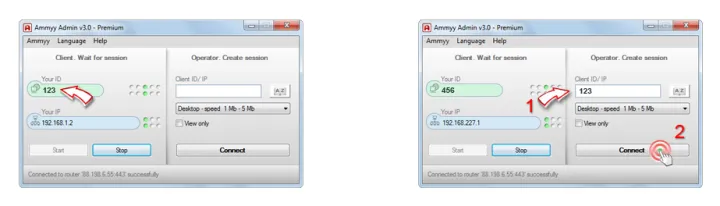 Ammyy Admin no requiere instalación ni ajustes de configuración específicos. El escritorio remoto está disponible para trabajar unos segundos después de iniciar Ammyy Admin.