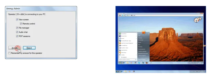 Utilice Ammyy Admin para controlar de forma remota servidores y PC sin presencia humana en el lado cliente. Ammyy Admin facilita el control remoto del escritorio de ordenadores desatendidos. Esto le permite ejecutar operaciones como reiniciar, iniciar/cerrar sesión y cambiar de usuario con Ammyy Admin Service para escritorios remotos compartidos.