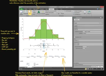 Analyze-it se integra en Microsoft Excel para proporcionar el poderoso análisis estadístico que esperaría de un costoso paquete de estadísticas, pero sin la complejidad o el costo.Cuatro ediciones satisfacen diferentes necesidades del cliente, desde investigación estadística tradicional incluyendo pruebas de hipótesis, ajuste de modelos, ANOVA y PCA, hasta control de procesos estadísticos (SPC).