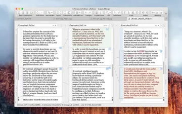 Con Araxis Merge identifique al instante cada cambio entre los diferentes borradores de contrato o manuscrito. Abra y compare directamente el texto de Microsoft Office (Word y Excel), OpenDocument, archivos PDF y RTF . Copie el texto de otras aplicaciones (como Microsoft Word) y péguelo directamente en una comparación de texto.