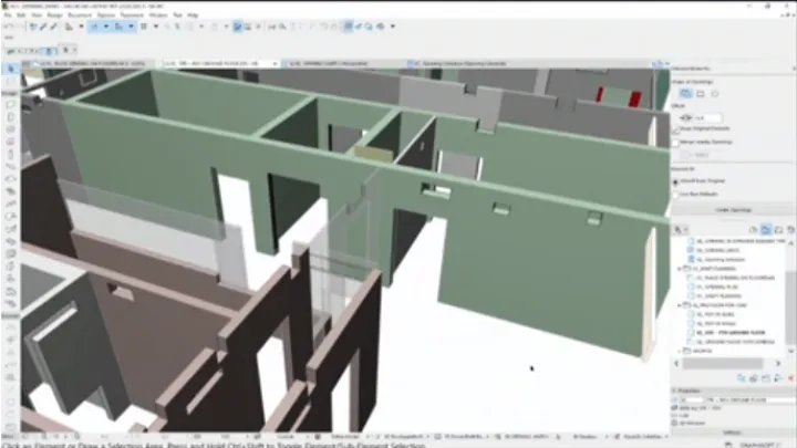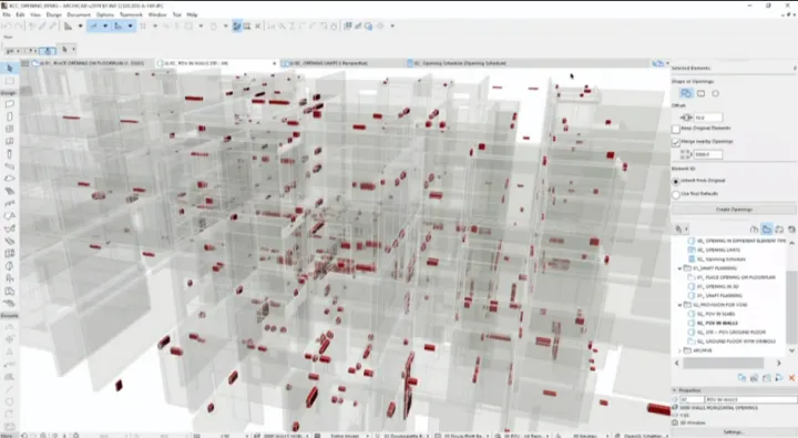 ARCHICAD 23 presenta una herramienta nueva de apertura dedicada a modelar y coordinar huecos, huecos y nichos de diseño de proyectos, como aberturas horizontales, verticales o inclinadas a través de elementos, grupos de elementos o incluso a través de historias. Estas aperturas son de suma importancia para llevar a cabo la coordinación del proyecto, ya que son igualmente relevantes para arquitectos, ingenieros y consultores y deben ser documentadas por arquitectos e ingenieros. Las aperturas pueden modelarse, programarse y documentarse utilizando herramientas intuitivas, y compartirse utilizando estándares abiertos de IFC .