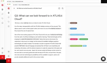 El área de margen interactivo es un espacio de trabajo único en ATLAS.ti no superado por ningún otro programa en el mercado. Permite una forma única e intuitiva de interactuar con sus datos, transfiriendo digitalmente la analogía tradicional de papel y lápiz en el mundo digital.