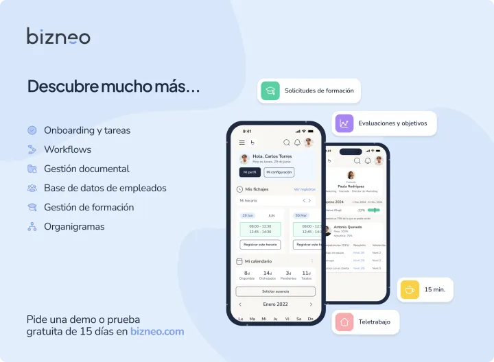 Con las herramienta de Bizneo HR puedes mejorar en un 47% el tiempo dedicado a la gestión de la presencia en tu organización.