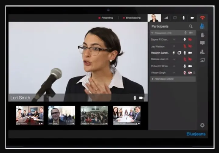 • BlueJeans EventsOrganice y gestione eventos interactivos en directo, debates abiertos y seminarios web para un gran público en todo el mundo.