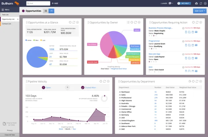 Bullhorn CRM ofrece soluciones basadas en la nube para empresas basadas en relaciones. Su tecnología automatizada de captura de datos y conocimiento del cliente ayuda a las empresas a ganar clientes y mantenerlos felices y comprometidos.