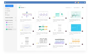 - Mantén los activos del equipo organizados con las carpetas compartidas. Todo se guarda y se almacena directamente en Cacoo.