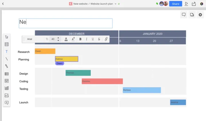 Empieza desde una plantilla o con dibujo libre en un lienzo en blanco. Recibe opiniones en cada paso mientras ves tus ideas cobrar vida. Con el modo de presentación, puedes mostrar tus diagramas a pequeñas y grandes audiencias.