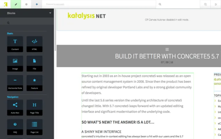 Concrete5 es un Sistema de gestión de contenido de código abierto (CMS). Faculte a sus editores para crear y compartir más contenido.