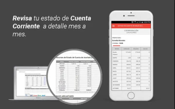 El sistema Permite llevar en línea el control de la cuenta corriente del condominio, registro de las cobranzas, control de la morosidad, registro de las lecturas de luz y agua, y a la vez genera un estado de cuenta general a la fecha On-Line.