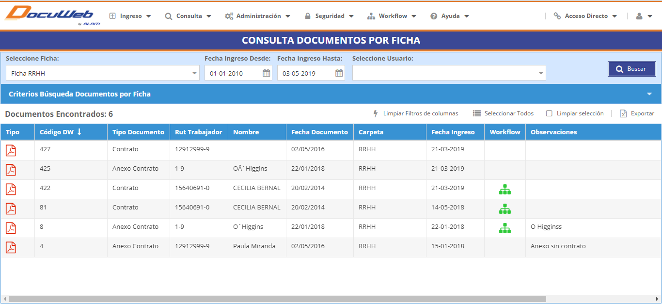 DocuWeb permite guardar, consultar y gestionar en forma rápida, segura y oportuna, todo tipo de documentos digitales y electrónicos. Estos se pueden acceder a través de Internet, la intranet de la empresa o una red local.