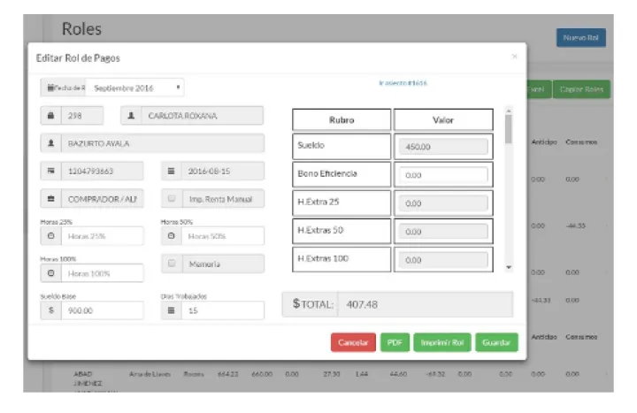 Se presenta la nómina en plancha o en forma individual. Viene con un formato de impresión de roles, fácil de entender para el personal. Todo lo que necesitas para pagar nómina rápidamente.