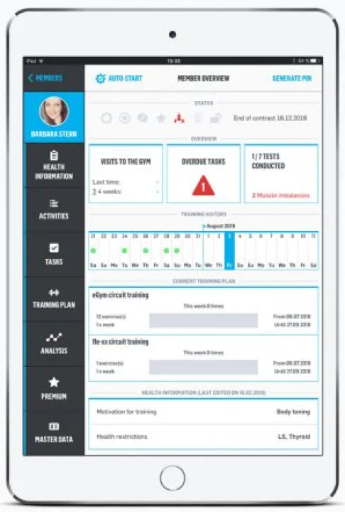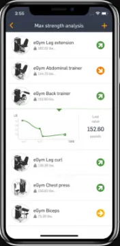 eGym logra registrar todos los datos de entrenamiento. Puedes acceder a cada dato en la fitness App y tu entrenador puede realizar consultas en la Trainer App.
