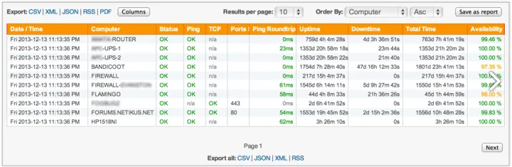 Además de monitorear máquinas que no son de Windows con comprobaciones de puertos PING y TCP, puede monitorear cualquier dispositivo compatible con SNMP (se admiten las versiones 1, 2c y 3), como servidores Linux, enrutadores y conmutadores que usan SNMP. La siguiente información se puede monitorear / recopilar actualmente: