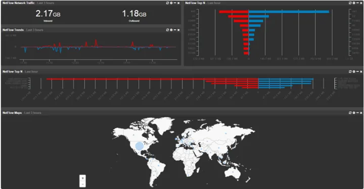 Incluyen comprobaciones ICMP y TCP, SNMP activo y pasivo, análisis de tráfico NetFlow y sFlow, monitoreo ARP, asignación de puertos de conmutación y más.