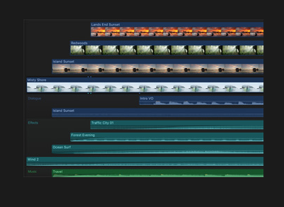 Su diseño se enfoca en agilizar el flujo de trabajo: la línea de tiempo magnética facilita la organización de clips, evita errores comunes de sincronización y permite editar con fluidez incluso proyectos complejos.