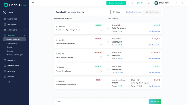 Con su ERP en la nube, FinanEDI permite centralizar la contabilidad y la emisión de facturas electrónicas en una única plataforma, facilitando la colaboración y permitiendo a las pymes y autónomos enfocarse en lo más importante: facturar. Además de estas funciones, ofrece la gestión de contactos, la creación e importación de documentos comerciales, la automatización de facturas recurrentes y el intercambio de documentación comercial en tiempo real.