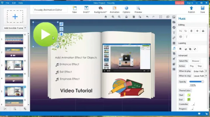 Editor de animación Agregar efectos de animación a objetos puede hacer que estén presentes en la pantalla de manera animada. Hay toneladas de efectos de animación dinámicos disponibles para mostrar.