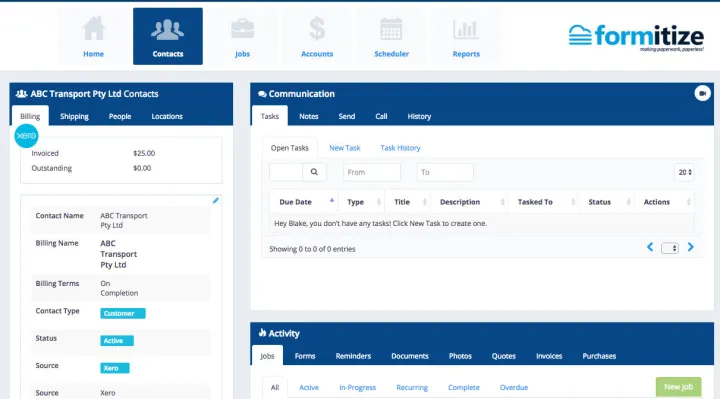 La solución completa de trabajo y forma es muy poderosa y la integración con otros sistemas es perfecta. Todos los documentos de seguridad, órdenes de trabajo, informes de servicio, registros de viaje, controles de vehículos, uso de existencias, tiempo las hojas y la facturación se ejecutan a través de la misma solución integrada. ¡Fantástico!