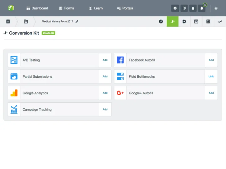 Con Formstrack recopila de forma segura los datos que necesita para hacer negocios y obtenga información clave para tomar mejores decisiones para su organización.Por medio sus pruebas A / B prueba dos formularios uno contra el otro para ver cuál es mejor.Por el sistema de cuellos de botella de campo identifican áreas problemáticas que hacen que las personas abandonen.