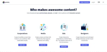 Ya no necesitas un equipo de diseñadores y programadores para crear contenido impactante y profesional, podrás hacer todo tú en solo un instante. Utiliza efectos interactivos y animados para distribuir fácilmente toda la información en capas que los espectadores podrán explorar y descubrir. Deja atrás el software de creación de contenido obsoleto y sorprende a tu audiencia con Genially. El efecto Wow está a tan sólo unos pocos clics de distancia.