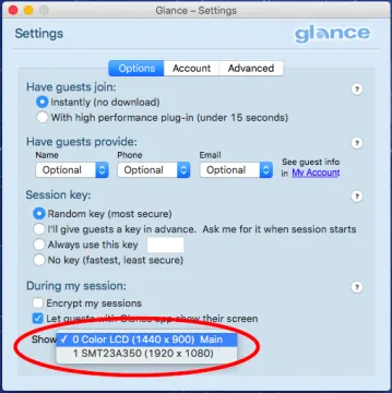 Funcionalidades de Glance Screen Share