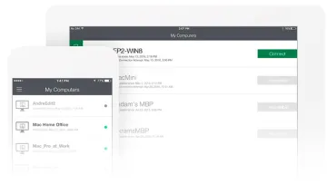 Vea lo fácil que puede ser el acceso al escritorio remoto desde cualquier dispositivo. Diseñamos nuestro software para la máxima velocidad, seguridad y facilidad de uso, asegurando que pueda iniciar sesión y conectarse fácilmente a su computadora host desde cualquier computadora remota, iPad, iPhone o dispositivo Android.