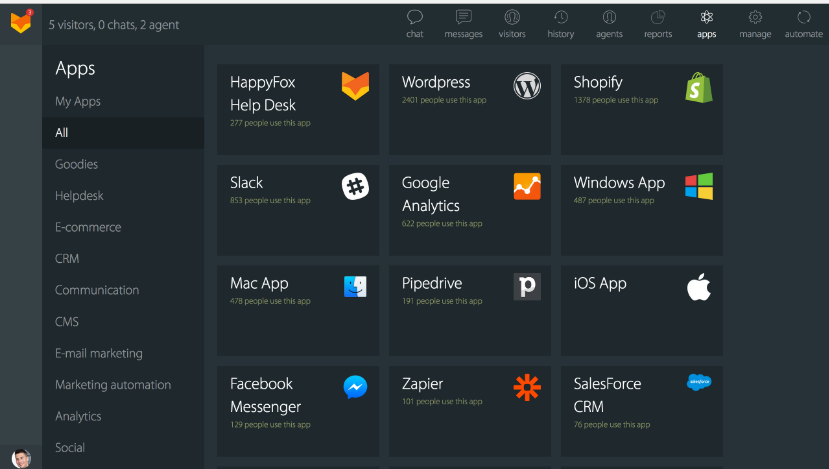 HappyFox Chat es un software de chat en vivo increíblemente potente que es simple, fácil y rápido. Para poner en primer lugar la experiencia, HappyFox Chat es liviano y responde a los dispositivos móviles. Con integraciones, sincroniza y agiliza los datos entre HappyFox Chat y todas tus aplicaciones comerciales favoritas.