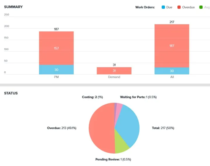 El Hippo Advanced Dash le permite ver activos y localizar problemas de mantenimiento por sección, mientras que la poderosa herramienta de informes muestra su historial de reparaciones, el tiempo de inactividad de los equipos y rastrea todos los costos asociados.