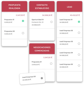 Nunca antes conociste tus oportunidades potenciales de negocio con tanta precisión. Toda la información de tus clientes a tu alcance en un vistazo. Consulta el perfil de tu cliente rápidamente y obtén toda la información detallada de la situación actual, la fecha de creación de la oportunidad generada, estimada fecha de cierre, potencial y mucho más.