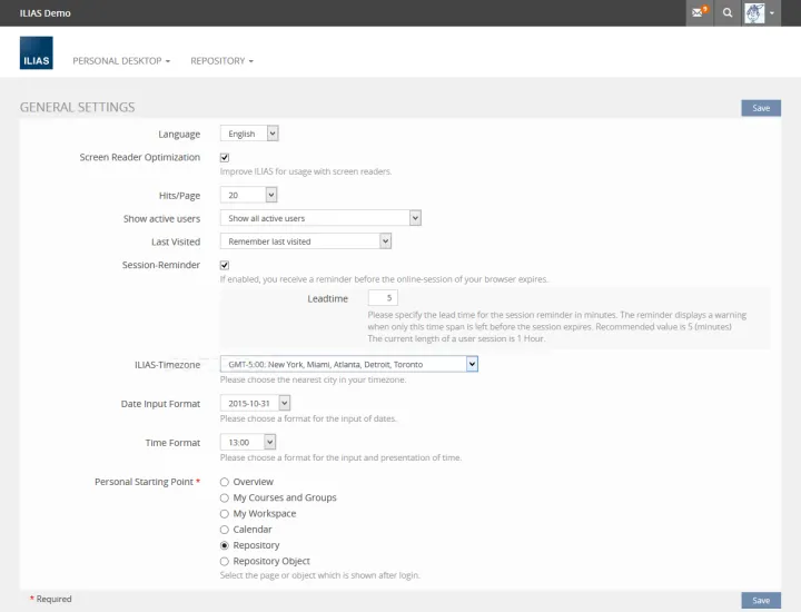 ILIAS permite la gestión de cursos, módulos de aprendizaje, pruebas y evaluación, portafolios, encuestas, wikis y blogs están todos integrados en el núcleo, haciendo de ILIAS una “solución integral” para sus necesidades de e-learning. Cambia su aspecto, implementa tus escenarios de aprendizaje preferidos, intégralo con tu sitio web o intranet, activa solo los módulos que necesitas, otorga a cada usuario el acceso exacto y los permisos que especifiques.
