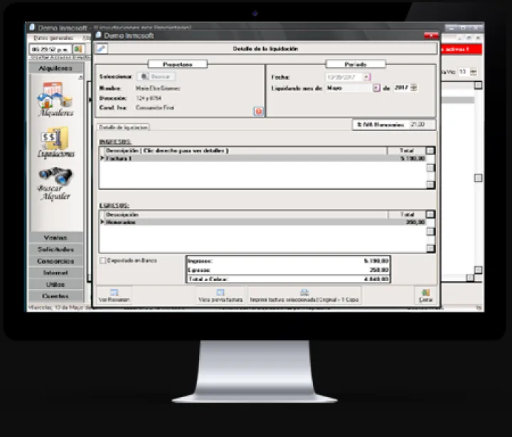 - Impresión de recibo: diseñado para la emisión de recibos para inquilinos y recibos para propietarios.