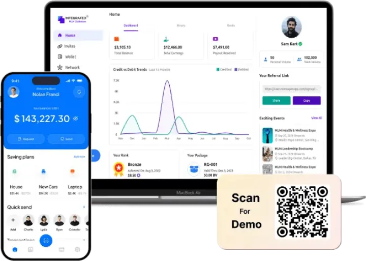 El software MLM integrado es una solución todo-en-uno que optimiza la gestión de redes, comisiones y ventas en marketing multinivel. Incluye herramientas avanzadas como e-wallet, seguimiento genealógico, análisis en tiempo real y e-commerce.