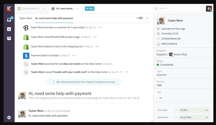Lleve la actividad del cliente de todas sus aplicaciones a Kayako para obtener un contexto real y una asistencia más rápida y útil; y no te vuelvas a perder un cliente asignando las conversaciones al agente adecuado y lleve a toda la compañía a bordo con colaboradores gratuitos.