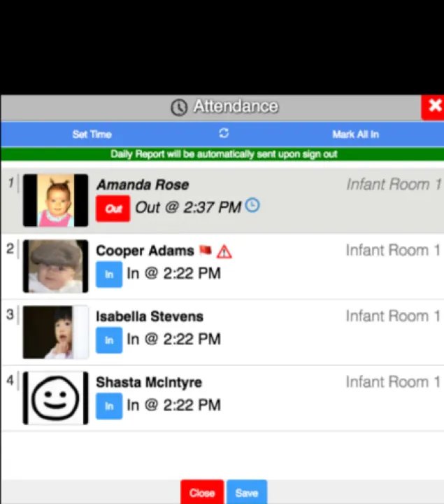 Esta magnífica herramienta brinda ayuda a los padres a realizar un registro de cuando dejan a sus hijos y pueden monitorear actividades diarias e históricas. Con la administración del centro, cada usuario puede incluir miembros de familia de forma ilimitado a la aplicación.