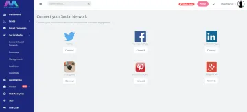 MaaxMarket viene con herramientas integradas de marketing por correo electrónico, publicación en redes sociales y escucha, seguimiento de visitantes en el sitio web en tiempo real y herramientas de colaboración.