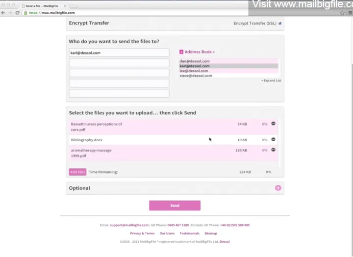 Sus archivos se almacenan en los servidores MailBigFile con encriptación AES de 256 bits.
