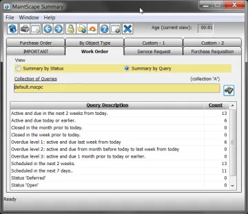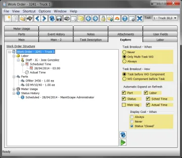 El módulo opcional de mantenimiento predictivo. Las órdenes de trabajo también se pueden crear a partir de solicitudes de servicio con un solo clic. Las órdenes de trabajo de MaintScape son extremadamente flexibles: pueden tener cualquier cantidad de tareas, piezas, artesanos y fechas de trabajo.