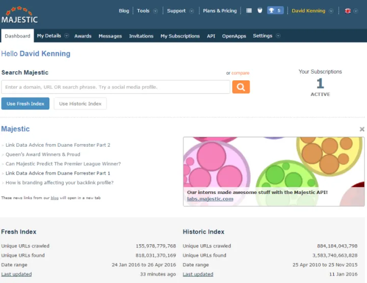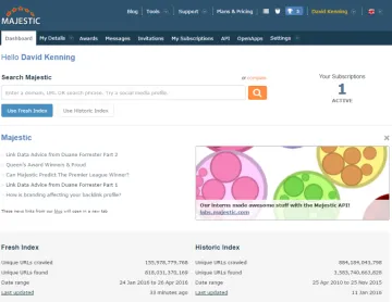 Encuentre todos los sitios web que enlazan con los suyos, o con CUALQUIER otro sitio web. Majestic, un motor de búsqueda de marketing especializado, obtiene su conocimiento del mapeo y la creación del índice web de inteligencia de enlaces disponible más grande del mundo. Esta información se usa para comprender el ADN de la web, categorizar cada página y cada dominio.