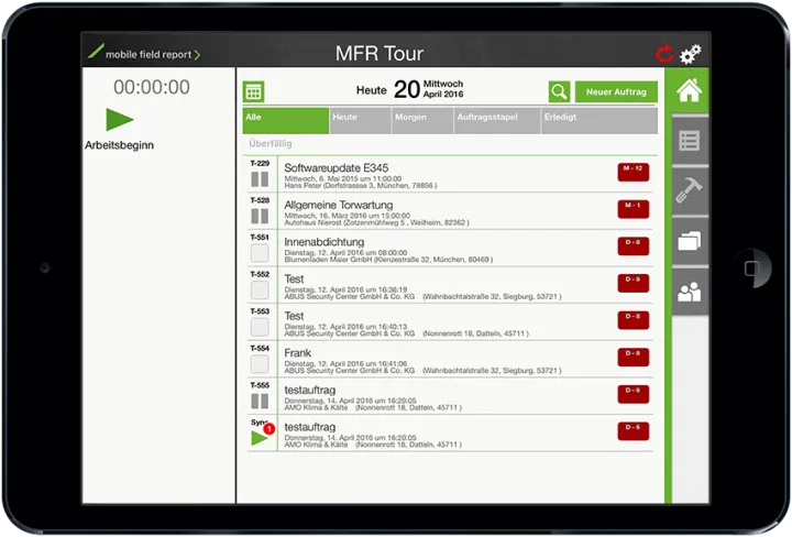 Con esta solución móvil, los técnicos e ingenieros de servicio de campo están perfectamente preparados para sus tareas. El diseño intuitivo de la aplicación hace que el seguimiento del tiempo y la documentación sea lo más fácil posible. Con la función fuera de línea, tiene una herramienta con la que siempre puede trabajar, sin importar qué.