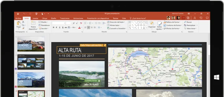 Puedes usar PowerPoint en tu computadora (Windows o Mac), desde el móvil (iOS y Android) o en su versión web, ideal para trabajar en equipo desde cualquier lugar. Todo se guarda en la nube con OneDrive, lo que facilita colaborar en tiempo real y no preocuparte por perder cambios.