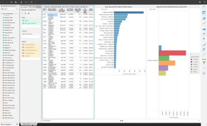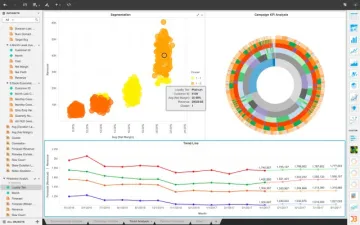 Además, ofrece análisis en tiempo real y la posibilidad de integrar paneles en aplicaciones comerciales personalizadas, con controladores y conectores nativos que acceden a diversas fuentes de datos, como bases de datos relacionales y aplicaciones en la nube. Brinda a los usuarios la posibilidad de combinar y usar datos de manera independiente, sin necesidad de soporte de TI.