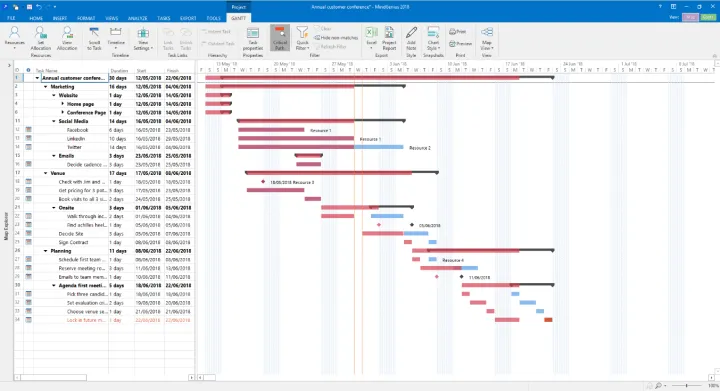 MindGenius 2018 es una herramienta de gestión de proyectos que le permite planificar, programar y gestionar todas las tareas relacionadas con el proyecto. Divida las ideas y la información para comprender el alcance del proyecto y determine los requisitos e involucre a las partes interesadas relevantes para acordar el alcance y la visión del proyecto. Cree fácilmente su estructura de desglose de trabajo de su plan. Las vistas dinámicas le permiten cambiar fácilmente entre la planificación, el diagrama de Gantt y las tareas. Identifica dependencias, hitos, restricciones y ruta crítica.