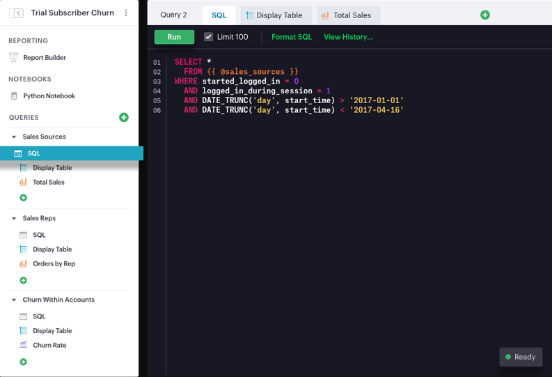 Mode Analytics permite una colaboración más estrecha entre equipos, respuestas más rápidas a preguntas significativas y decisiones que cambian el juego. Conecta tu almacén de datos. Analice con SQL, Python o R. Comparta en toda su organización.