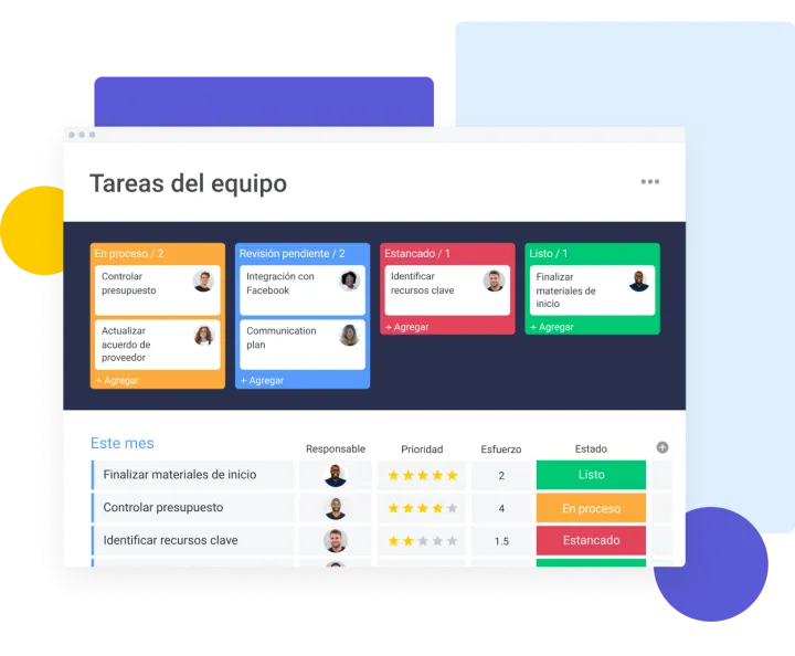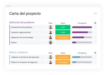 Mediante tableros totalmente personalizables —Kanban, cronogramas, hojas de cálculo, vistas de carga de trabajo o dashboards de alto nivel— centraliza tareas, archivos, dependencias, SLA y métricas para ofrecer visibilidad instantánea sobre quién hace qué y para cuándo.