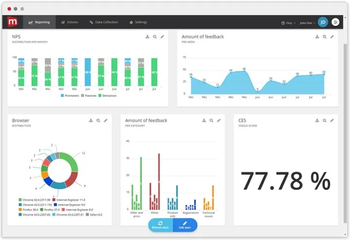 Reúna los comentarios de los clientes en tiempo real con nuestros formularios de comentarios intuitivos y disparadores avanzados.
